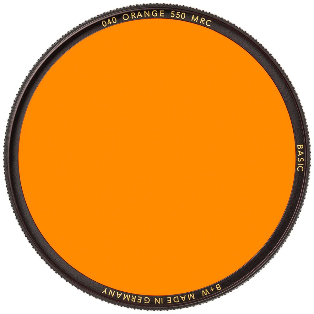 B+W Basic 040 Orange MRC to filtr barwny należący do nowej, podstawowej serii Basic marki B+W która zastąpiła popularną i cenioną przez zawodowych fotografów serię F-pro. Filtr pomarańczowy znajduje zastosowanie w fotografii czarnobiałej. Pochłaniając niebieski i zielony kolor w stopniu nieco mniejszym niż filtr czerwony sprawi, że niebo na zdjęciu stanie się ciemniejsze, natomiast kolor żółty i pomarańczowy będą rozjaśnione. Zastosowanie tego filtra jest szerokie: doskonale sprawdza się w przypadku fotografowania krajobrazów, gdzie pomaga przyciemnić niebo, w portretach, gdzie podkreśla jaśniejszy odcień skóry, oraz przy fotografowaniu śniegu. Filtr żółty to jedno z najczęściej używanych narzędzi w fotografii czarno-białej. Jego wszechstronność pozwala na efektywne zastosowanie w większości sytuacji fotograficznych, dlatego też w przeszłości praktycznie nieodłącznie towarzyszył aparatom wielu fotografów, często stanowiąc jedyny wybór.